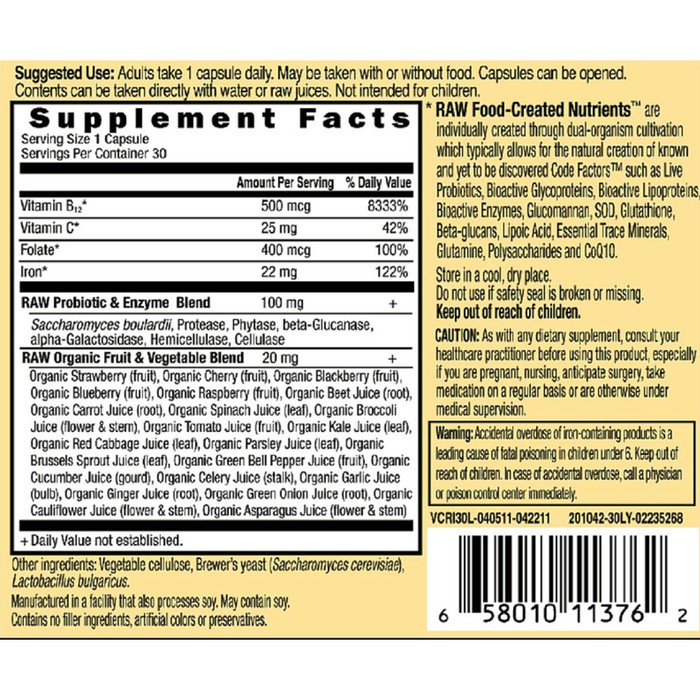Vitamin Code Raw Iron 30 Vegan Capsules Garden Of Life
